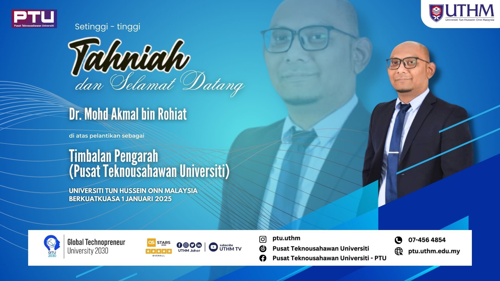 Kami dengan sukacitanya ingin mengucapkan selamat datang kepada Timbalan Pengarah Pusat Teknousahawan Universiti ke dalam keluarga besar kami. Kehadiran anda di sini pastinya akan membawa impak yang besar dalam memperkukuh lagi usaha kami dalam memajukan ekosistem inovasi dan keusahawanan di universiti.🥰